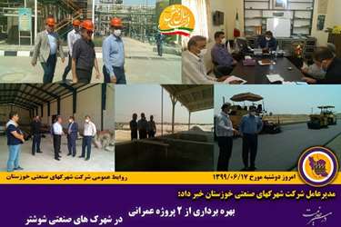 مدیرعامل شرکت شهرکهای صنعتی خوزستان خبر داد: بهره برداری از 2 پروژه عمرانی در شهرکهای صنعتی شوشتر