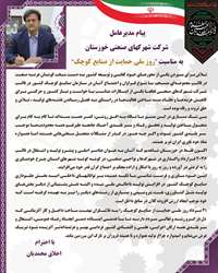 پيام مديرعامل و رئیس هیأت مدیره شرکت شهرکهای صنعتی خوزستان در آستانه فرارسيدن روز ملی حمايت از صنايع كوچك