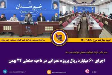 مدیرعامل شرکت شهرکهای صنعتی خوزستان گفت: پروژه های عمرانی خیابان سازی و تکمیل پست های کمپکت برق که با اعتباری قریب به 60 میلیارد ریال در حال اجرا در ناحیه صنعتی 22 بهمن می باشند، تقریباً طی 5 ماه آینده به بهره برداری خواهند رسید.
