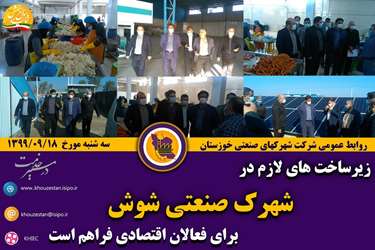 مدیرعامل شرکت شهرک های صنعتی خوزستان  با اشاره به اینکه شهرک صنعتی شوش از شهرک های موفق و کارآمد استان است گفت: تمامی زیرساخت های لازم در این شهرک برای فعالیت واحدهای صنعتی و سرمایه گذاران فراهم و ایجاد شده است.