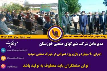 مدیرعامل شرکت شهرک‌های صنعتی خوزستان:اجرای 90 میلیارد ریال پروژه عمرانی در شهرک صنعتی امیدیه/ توان صنعتگران باید معطوف به تولید باشد