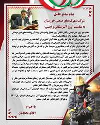 اينجانب بر خود وظيفه مي دانم اين روز ارزشمند كه متقارن با هفته دفاع مقدس است را ضمن ياد و خاطره حماسه آفريني هاي آتش نشانان ميهن اسلامي در عرصه دفاع مقدس و گرامي داشتن انسان هایی كه با ايثار و شهامت براي كمك رساني به آسيب ديدگان ناشي از حملات دشمن جان خويش در طبق اخلاص نهادند و برگ زرين ديگري را در تاريخ شكوهمند ايران اسلامي ثبت كردند به تمام آتش نشانان سراسر كشور به ويژه شما كاركنان مستقر در شهرکها و نواحی صنعتی، صمیمانه تبریک عرض نمايم و امیدوارم در تامین ایمنی و حفظ جان و سلامت خود و مجموعه شرکت شهرکهای صنعتی خوزستان سربلند و پیروز باشید.